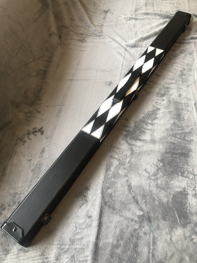 The case has a Black & White Harlequin pattern on the outside of the case.